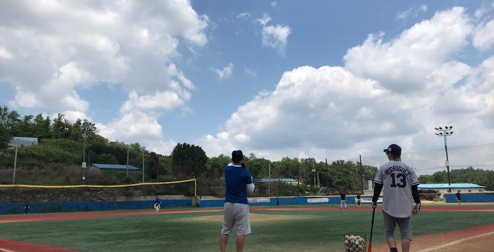 하늘이 그림 같았던 날이었습니다. 운동하기도 딱 좋은 선선한 날씨였구요. 다산수호 야구장은 리커버리 야구단 창단 후원 경기를 펼쳤던 곳으로, 꼭 저희의 홈구장 같은 느낌이 들어서 늘 좋습니다.